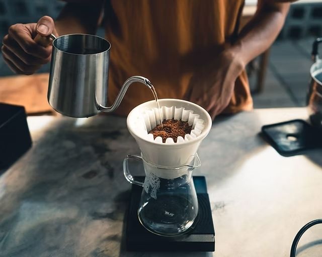 等待 5-8 分鐘,讓咖啡緩緩滴落。